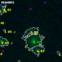 Object #5397 x,y = (2853, 1027) RA, Dec = (01:37:23.688, -8:28:50.16) = (24.34870, -8.48060) BPZ = 0.591 [0.446--2.130] type = 9.70 (SB3_B10 - SB2_B10) chisq2 = 0.01 ODDS = 0.24 z_cluster = 0.566