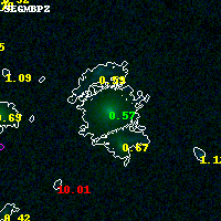 Object #5398 x,y = (2862, 995) RA, Dec = (01:37:23.664, -8:28:51.96) = (24.34860, -8.48110) BPZ = 0.567 [0.512--0.643] type = 3.00 (Ell5_A_0) chisq2 = 0.02 ODDS = 0.95 z_cluster = 0.566