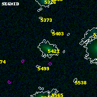 Object #5421 x,y = (2759, 993) RA, Dec = (01:37:24.072, -8:28:51.96) = (24.35030, -8.48110) BPZ = 0.687 [0.594--0.730] type = 5.30 (ES0_B10 - Sbc_B10) chisq2 = 0.00 ODDS = 0.88 z_cluster = 0.566