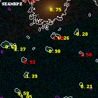 Object #5508 x,y = (2044, 948) RA, Dec = (01:37:26.976, -8:28:54.84) = (24.36240, -8.48190) BPZ = 0.896 [0.518--1.673] type = 10.50 (SB11_A_0_l - SB3_B10) chisq2 = 0.02 ODDS = 0.27 z_cluster = 0.566