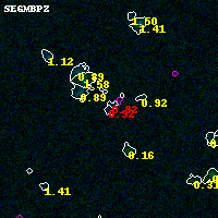 Object #5554 x,y = (3000, 907) RA, Dec = (01:37:23.112, -8:28:57.36) = (24.34630, -8.48260) BPZ = 0.922 [0.546--10.257] type = 10.90 (SB11_A_0_l - SB3_B10) chisq2 = 6.12 ODDS = 0.31 z_cluster = 0.566