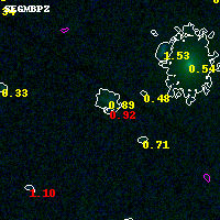 Object #5659 x,y = (3322, 820) RA, Dec = (01:37:21.792, -8:29:02.40) = (24.34080, -8.48400) BPZ = 0.921 [0.356--2.499] type = 10.30 (SB3_B10 - SB11_A_0_l) chisq2 = 3.39 ODDS = 0.20 z_cluster = 0.566
