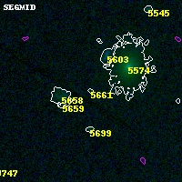 Object #5661 x,y = (3353, 835) RA, Dec = (01:37:21.672, -8:29:01.68) = (24.34030, -8.48380) BPZ = 0.476 [0.222--4.417] type = 3.00 (Ell5_A_0) chisq2 = 0.07 ODDS = 0.10 z_cluster = 0.566