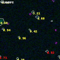 Object #5780 x,y = (2841, 707) RA, Dec = (01:37:23.736, -8:29:09.24) = (24.34890, -8.48590) BPZ = 0.424 [0.202--4.297] type = 3.00 (Ell5_A_0) chisq2 = 0.07 ODDS = 0.15 z_cluster = 0.566