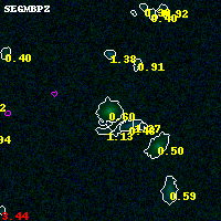 Object #5844 x,y = (3155, 610) RA, Dec = (01:37:22.464, -8:29:15.00) = (24.34360, -8.48750) BPZ = 0.596 [0.537--0.687] type = 3.00 (Ell5_A_0) chisq2 = 0.01 ODDS = 0.91 z_cluster = 0.566