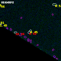 Object #6086 x,y = (2983, 258) RA, Dec = (01:37:23.160, -8:29:36.24) = (24.34650, -8.49340) BPZ = 0.452 [0.090--3.528] type = 7.70 (SB1_B10 - Scd_B10) chisq2 = 0.00 ODDS = 0.09 z_cluster = 0.566
