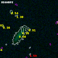 Object #745 x,y = (2368, 3881) RA, Dec = (01:37:25.656, -8:25:58.80) = (24.35690, -8.43300) BPZ = 0.907 [0.287--3.014] type = 7.50 (SB1_B10 - Scd_B10) chisq2 = 0.00 ODDS = 0.14 z_cluster = 0.566