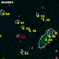 Object #807 x,y = (2280, 3890) RA, Dec = (01:37:26.016, -8:25:58.08) = (24.35840, -8.43280) BPZ = 0.304 [0.138--4.163] type = 6.30 (Sbc_B10 - Scd_B10) chisq2 = 0.01 ODDS = 0.09 z_cluster = 0.566