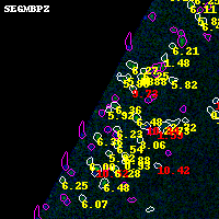 Object #861 x,y = (1162, 3780) RA, Dec = (01:37:30.528, -8:26:04.92) = (24.37720, -8.43470) BPZ = 5.918 [1.694--8.955] type = 6.00 (Sbc_B10) chisq2 = 0.02 ODDS = 0.24 z_cluster = 0.566