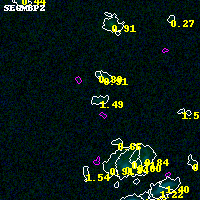 Object #960 x,y = (2103, 3711) RA, Dec = (01:37:26.736, -8:26:08.88) = (24.36140, -8.43580) BPZ = 1.487 [0.184--2.329] type = 8.20 (SB1_B10 - SB2_B10) chisq2 = 0.00 ODDS = 0.15 z_cluster = 0.566
