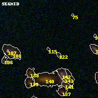 Object #115 x,y = (3081, 3320) RA, Dec = (01:37:22.776, -8:26:32.28) = (24.34490, -8.44230) BPZ = 1.386 [0.357--3.485] type = 9.30 (SB2_B10 - SB3_B10) chisq2 = 0.49 ODDS = 0.10 z_cluster = 0.566