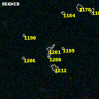 Object #1201 x,y = (2519, 1248) RA, Dec = (01:37:25.032, -8:28:36.84) = (24.35430, -8.47690) BPZ = 0.330 [0.154--3.552] type = 9.00 (SB2_B10) chisq2 = 0.36 ODDS = 0.27 z_cluster = 0.566