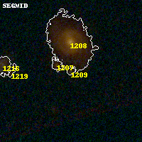 Object #1209 x,y = (2342, 1144) RA, Dec = (01:37:25.752, -8:28:42.96) = (24.35730, -8.47860) BPZ = 0.445 [0.178--3.279] type = 7.40 (Scd_B10 - SB1_B10) chisq2 = 0.80 ODDS = 0.18 z_cluster = 0.566