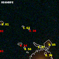 Object #1221 x,y = (2008, 1139) RA, Dec = (01:37:27.120, -8:28:43.32) = (24.36300, -8.47870) BPZ = 3.301 [0.213--3.859] type = 9.70 (SB3_B10 - SB2_B10) chisq2 = 1.70 ODDS = 0.14 z_cluster = 0.566