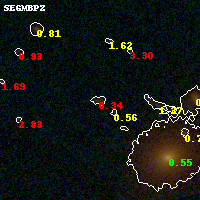 Object #1227 x,y = (1977, 1089) RA, Dec = (01:37:27.240, -8:28:46.20) = (24.36350, -8.47950) BPZ = 0.335 [0.130--3.393] type = 9.00 (SB2_B10) chisq2 = 1.32 ODDS = 0.22 z_cluster = 0.566