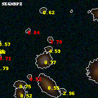 Object #169 x,y = (1847, 3234) RA, Dec = (01:37:27.768, -8:26:37.68) = (24.36570, -8.44380) BPZ = 4.594 [0.663--4.833] type = 8.00 (SB1_B10) chisq2 = 0.59 ODDS = 0.56 z_cluster = 0.566