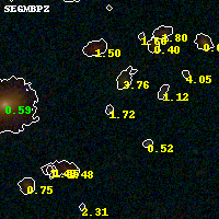 Object #196 x,y = (2050, 3186) RA, Dec = (01:37:26.952, -8:26:40.56) = (24.36230, -8.44460) BPZ = 1.724 [0.997--2.527] type = 10.30 (SB3_B10 - SB11_A_0_l) chisq2 = 0.46 ODDS = 0.44 z_cluster = 0.566