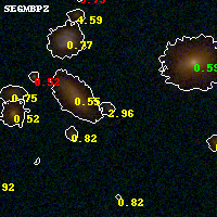 Object #200 x,y = (1876, 3148) RA, Dec = (01:37:27.648, -8:26:42.72) = (24.36520, -8.44520) BPZ = 2.956 [0.296--3.246] type = 9.20 (SB2_B10 - SB3_B10) chisq2 = 0.73 ODDS = 0.59 z_cluster = 0.566