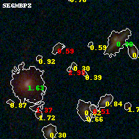 Object #241 x,y = (1385, 3097) RA, Dec = (01:37:29.640, -8:26:45.96) = (24.37350, -8.44610) BPZ = 2.928 [0.232--3.751] type = 9.20 (SB2_B10 - SB3_B10) chisq2 = 1.09 ODDS = 0.27 z_cluster = 0.566