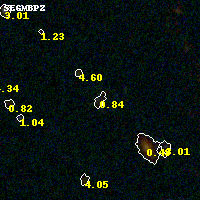 Object #251 x,y = (3311, 3079) RA, Dec = (01:37:21.840, -8:26:47.04) = (24.34100, -8.44640) BPZ = 0.844 [0.104--1.387] type = 9.50 (SB3_B10 - SB2_B10) chisq2 = 0.53 ODDS = 0.19 z_cluster = 0.566