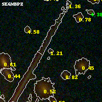 Object #319 x,y = (2798, 2958) RA, Dec = (01:37:23.928, -8:26:54.24) = (24.34970, -8.44840) BPZ = 1.205 [0.459--1.980] type = 9.40 (SB2_B10 - SB3_B10) chisq2 = 0.34 ODDS = 0.25 z_cluster = 0.566
