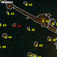 Object #378 x,y = (2469, 2835) RA, Dec = (01:37:25.248, -8:27:01.44) = (24.35520, -8.45040) BPZ = 4.148 [0.388--4.454] type = 9.10 (SB2_B10 - SB3_B10) chisq2 = 0.85 ODDS = 0.39 z_cluster = 0.566