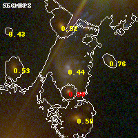 Object #433 x,y = (2622, 2618) RA, Dec = (01:37:24.624, -8:27:14.40) = (24.35260, -8.45400) BPZ = 0.438 [0.273--0.537] type = 8.00 (SB1_B10) chisq2 = 0.24 ODDS = 0.90 z_cluster = 0.566