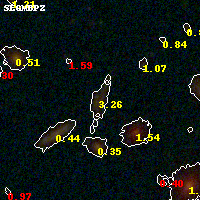 Object #483 x,y = (1833, 2638) RA, Dec = (01:37:27.816, -8:27:13.32) = (24.36590, -8.45370) BPZ = 3.259 [3.173--3.476] type = 7.90 (SB1_B10 - Scd_B10) chisq2 = 0.19 ODDS = 0.91 z_cluster = 0.566