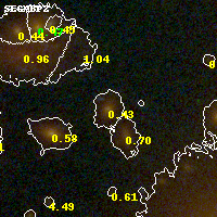 Object #490 x,y = (2443, 2627) RA, Dec = (01:37:25.344, -8:27:14.04) = (24.35560, -8.45390) BPZ = 0.426 [0.325--0.547] type = 4.10 (Ell4_A_0 - ES0_B10) chisq2 = 0.06 ODDS = 0.76 z_cluster = 0.566