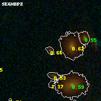 Object #52 x,y = (3210, 3488) RA, Dec = (01:37:22.248, -8:26:22.20) = (24.34270, -8.43950) BPZ = 0.660 [0.521--0.874] type = 8.20 (SB1_B10 - SB2_B10) chisq2 = 0.52 ODDS = 0.57 z_cluster = 0.566