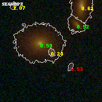 Object #536 x,y = (2263, 2508) RA, Dec = (01:37:26.088, -8:27:21.24) = (24.35870, -8.45590) BPZ = 0.243 [0.176--0.711] type = 4.00 (Ell4_A_0) chisq2 = 0.35 ODDS = 0.55 z_cluster = 0.566