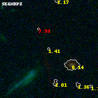Object #556 x,y = (1453, 2528) RA, Dec = (01:37:29.352, -8:27:19.80) = (24.37230, -8.45550) BPZ = 1.414 [0.447--4.036] type = 8.50 (SB2_B10 - SB1_B10) chisq2 = 0.28 ODDS = 0.12 z_cluster = 0.566