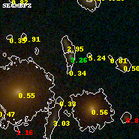 Object #585   x,y = (3018, 2419)   RA, Dec = (01:37:23.016, -8:27:26.64) = (24.34590, -8.45740)   BPZ = 0.344 [0.099--3.418]   type = 9.90 (SB3_B10 - SB2_B10)   chisq2 = 0.31   ODDS = 0.27   z_cluster = 0.566
