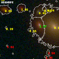 Object #809 x,y = (2059, 2046) RA, Dec = (01:37:26.904, -8:27:48.96) = (24.36210, -8.46360) BPZ = 3.149 [0.169--3.390] type = 9.80 (SB3_B10 - SB2_B10) chisq2 = 0.46 ODDS = 0.55 z_cluster = 0.566