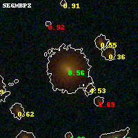 Object #827 x,y = (2486, 1978) RA, Dec = (01:37:25.176, -8:27:52.92) = (24.35490, -8.46470) BPZ = 0.561 [0.509--0.608] type = 4.60 (ES0_B10 - Ell4_A_0) chisq2 = 0.01 ODDS = 0.99 z_cluster = 0.566