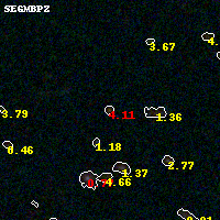 Object #84 x,y = (2739, 3360) RA, Dec = (01:37:24.144, -8:26:30.12) = (24.35060, -8.44170) BPZ = 4.112 [0.490--4.389] type = 9.20 (SB2_B10 - SB3_B10) chisq2 = 2.05 ODDS = 0.69 z_cluster = 0.566
