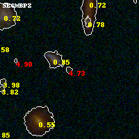 Object #915 x,y = (1907, 1866) RA, Dec = (01:37:27.528, -8:27:59.76) = (24.36470, -8.46660) BPZ = 4.728 [0.852--5.198] type = 10.00 (SB3_B10) chisq2 = 1.07 ODDS = 0.67 z_cluster = 0.566