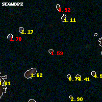 Object #922 x,y = (3198, 1851) RA, Dec = (01:37:22.296, -8:28:00.48) = (24.34290, -8.46680) BPZ = 1.587 [0.171--3.163] type = 9.40 (SB2_B10 - SB3_B10) chisq2 = 1.90 ODDS = 0.22 z_cluster = 0.566