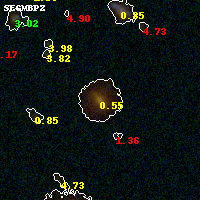 Object #945 x,y = (1864, 1792) RA, Dec = (01:37:27.696, -8:28:04.08) = (24.36540, -8.46780) BPZ = 0.545 [0.469--0.583] type = 3.30 (Ell5_A_0 - Ell4_A_0) chisq2 = 0.01 ODDS = 0.95 z_cluster = 0.566
