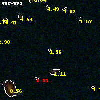 Object #981 x,y = (3340, 1741) RA, Dec = (01:37:21.720, -8:28:07.32) = (24.34050, -8.46870) BPZ = 1.557 [0.631--3.021] type = 10.80 (SB11_A_0_l - SB3_B10) chisq2 = 0.27 ODDS = 0.13 z_cluster = 0.566