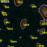 Object #1019 x,y = (2346, 1688) RA, Dec = (01:37:25.752, -8:28:10.20) = (24.35730, -8.46950) BPZ = 0.312 [0.245--0.665] type = 2.00 (Ell6_A_0) chisq2 = 0.16 ODDS = 0.65 z_cluster = 0.566
