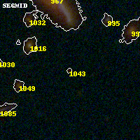 Object #1043 x,y = (2482, 1619) RA, Dec = (01:37:25.200, -8:28:14.52) = (24.35500, -8.47070) BPZ = 0.975 [0.705--7.139] type = 3.00 (Ell5_A_0) chisq2 = 1.60 ODDS = 0.12 z_cluster = 0.566