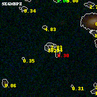 Object #1140 x,y = (2011, 1435) RA, Dec = (01:37:27.096, -8:28:25.68) = (24.36290, -8.47380) BPZ = 3.267 [0.370--3.443] type = 10.40 (SB3_B10 - SB11_A_0_l) chisq2 = 0.25 ODDS = 0.93 z_cluster = 0.566