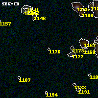Object #1176 x,y = (2061, 1357) RA, Dec = (01:37:26.904, -8:28:30.36) = (24.36210, -8.47510) BPZ = 0.311 [0.136--5.092] type = 4.00 (Ell4_A_0) chisq2 = 0.75 ODDS = 0.06 z_cluster = 0.566