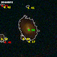 Object #1208 x,y = (2341, 1185) RA, Dec = (01:37:25.752, -8:28:40.44) = (24.35730, -8.47790) BPZ = 0.582 [0.515--0.623] type = 2.80 (Ell5_A_0 - Ell6_A_0) chisq2 = 0.01 ODDS = 0.97 z_cluster = 0.566