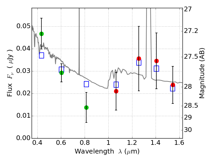 Object #1223   x,y = (1880, 1108)   RA, Dec = (01:37:27.624, -8:28:45.12) = (24.36510, -8.47920)   BPZ = 1.693 [1.206--2.542]   type = 11.00 (SB11_A_0_l)   chisq2 = 1.06   ODDS = 0.29   z_cluster = 0.566