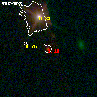 Object #133 x,y = (3340, 3285) RA, Dec = (01:37:21.720, -8:26:34.44) = (24.34050, -8.44290) BPZ = 5.177 [5.071--5.244] type = 7.90 (SB1_B10 - Scd_B10) chisq2 = 1.25 ODDS = 1.00 z_cluster = 0.566