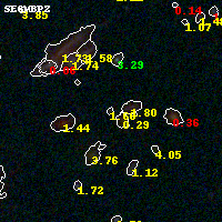 Object #158 x,y = (2079, 3253) RA, Dec = (01:37:26.832, -8:26:36.60) = (24.36180, -8.44350) BPZ = 1.596 [0.121--3.368] type = 9.90 (SB3_B10 - SB2_B10) chisq2 = 0.64 ODDS = 0.15 z_cluster = 0.566