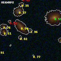 Object #200 x,y = (1876, 3148) RA, Dec = (01:37:27.648, -8:26:42.72) = (24.36520, -8.44520) BPZ = 2.956 [0.290--3.246] type = 9.20 (SB2_B10 - SB3_B10) chisq2 = 0.73 ODDS = 0.59 z_cluster = 0.566