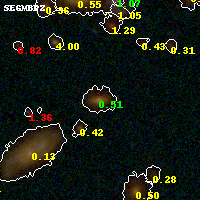 Object #206 x,y = (3096, 3159) RA, Dec = (01:37:22.704, -8:26:42.00) = (24.34460, -8.44500) BPZ = 0.514 [0.444--0.549] type = 3.30 (Ell5_A_0 - Ell4_A_0) chisq2 = 0.02 ODDS = 0.96 z_cluster = 0.566